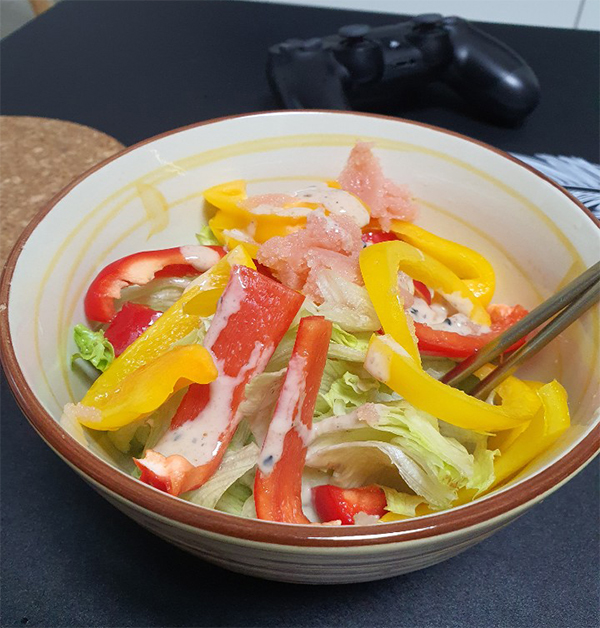 P.s : 저녁에 운동하고 나니 배고프고, 다이어트도 할 겸 명란젓으로 소스를 대체한 샐러드에 도전.