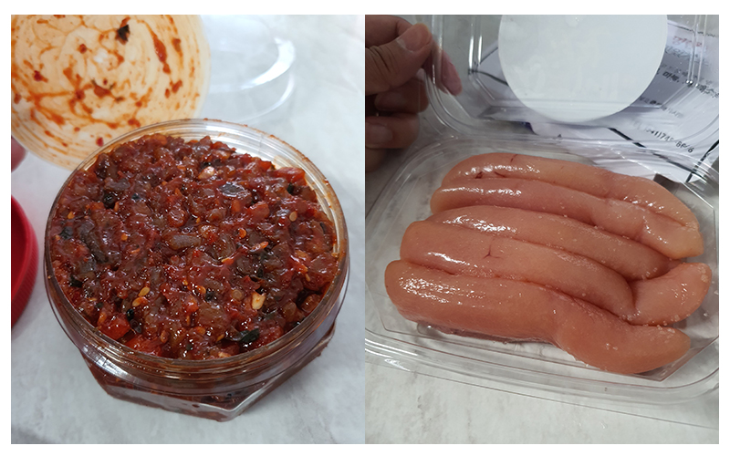 아무튼 보자마자 별생각 없이 '비빔 낙지젓' 구매, 주말에 명랑 파스타나 해 먹을까 하고 '명란젓'도 함께 사버렸다.