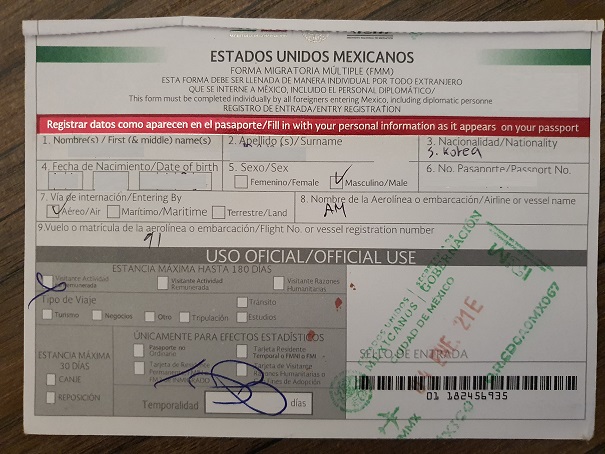 참, 멕시코 입국 시 출국 시까지 가지고 있으라던 FMM 문서는 항공기 탈 때 제출하게 된다.